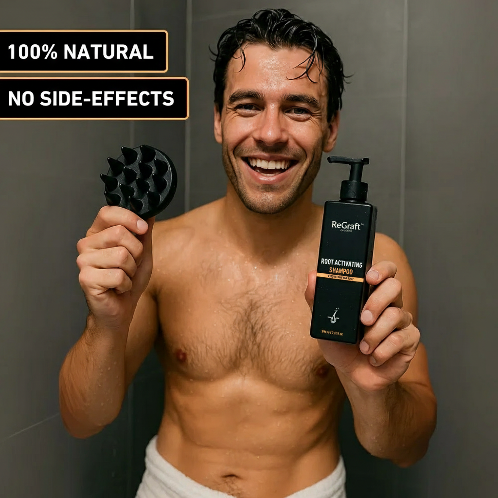 The days and weeks following a transplant are some of the most delicate, and ReGraft™ Post-Transplant Shampoo is formulated to support proper healing from the very first wash. Newly placed grafts are extremely sensitive, and using harsh or ordinary shampoos can irritate the scalp, disrupt follicles, or slow the healing process. ReGraft™ provides gentle cleansing while calming inflammation, reducing redness, and soothing sensitivity.