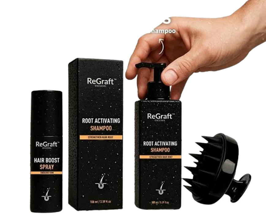 ReGraft™ is specifically designed for the pre- and post-transplant phases. Unlike regular shampoos, it supports scalp preparation before surgery, protects sensitive grafts after surgery, reduces inflammation, and promotes long-term regrowth. It contains clinically inspired ingredients safe for both healing and newly transplanted follicles.